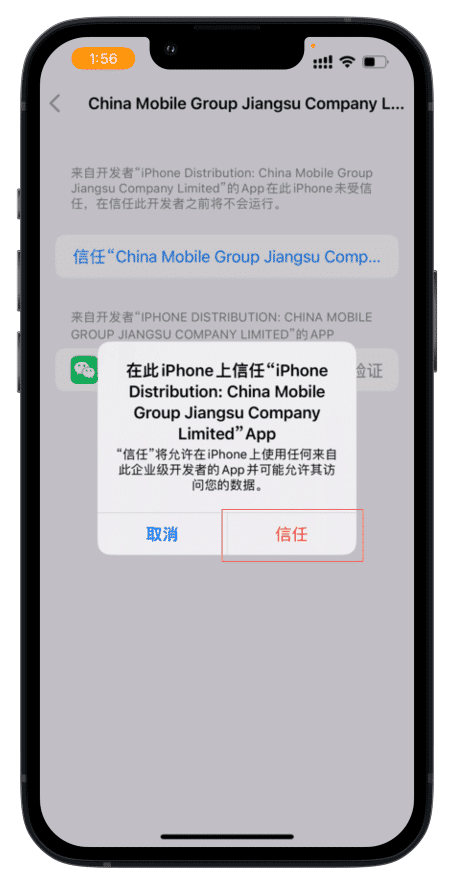 4.在企业级中找到对应的文件,选择信任,接着就可以使用了