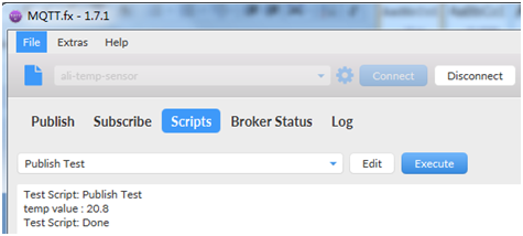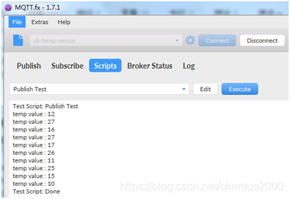 打开MQTT.fx > 连接Connect > 选择Scripts > 下拉列表 > 选择脚本