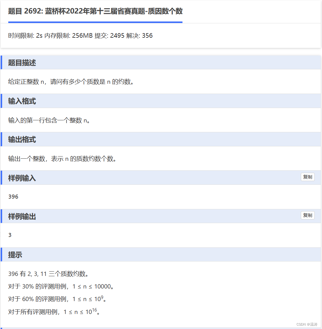 质因数个数-蓝桥杯算法题PYTHON数据结构