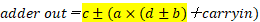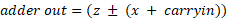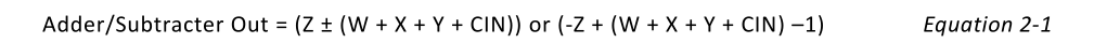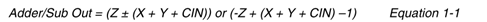 在最基本的操作模式中,加法器/减法器的输入可来自于上级的多路复用器,进位选择逻辑和乘法器。式(11-3)描述了加法器/减法器的输出。carryin和x的输出总是相加,其结果可与z的输出相加或减: