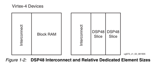 DSP48 tile的高度与四个CLB相同,并且与一个Block RAM的高度匹配。