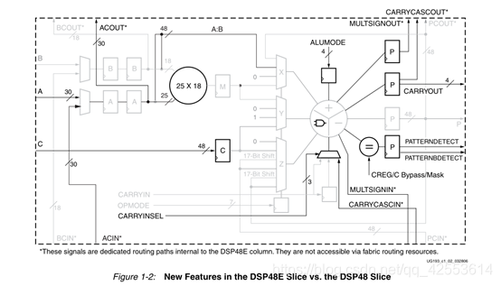 与DSP48E1 slice相比,DSP48E2具有更广泛的功能: