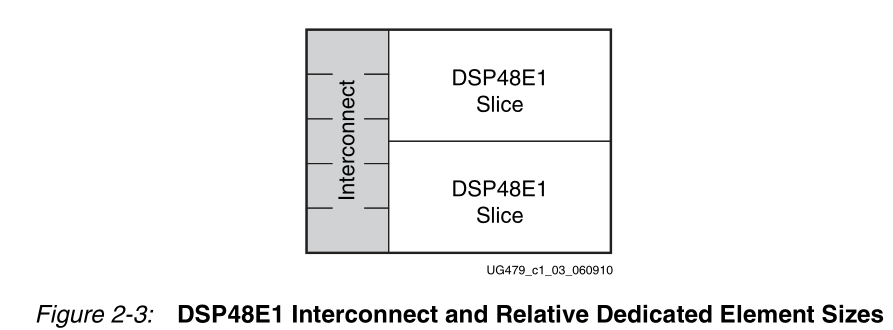 两个DSP48E1片和专用互连形成一个DSP48E1 Tile(参见图2-3)。DSP48E1 Tile垂直地堆叠在DSP48E1列中。DSP48E1 Tile的高度与五个可配置逻辑块(CLBs)相同,并且与一个块RAM的高度匹配。7系列设备中的块RAM可分为两个18K块RAM。每个DSP48E1片与一个18K块RAM水平对齐。7系列设备最多有20个DSP48E1列。
