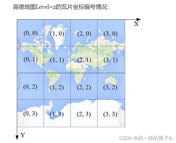 MAP_URLS = {"onwer_server": "http://ip:port/geoserver/ows?service=WMS&version=1.3.0&transparent=true&request=GetMap&layers={style}&width=256&height=256&srs=EPSG%3A3857&format=image/png&bbox={bbox}&xyz={xyz}","Google": "http://mts0.googleapis.com/vt?lyrs={style}&x={x}&y={y}&z={z}","Google China": "http://mt2.google.cn/vt/lyrs={style}&hl=zh-CN&gl=CN&src=app&x={x}&y={y}&z={z}&s=Galile"}def tile2lonlat(x, y, z):"""@description :切图坐标转lonlat---------@param x :瓦片的x轴@param y :瓦片的y轴@param z :瓦片的层级-------@Returns :[经度, 纬度]-------"""x = float(x)y = float(y)n = math.pow(2, int(z))lon = x / n * 360.0 - 180.0lat = math.atan(math.sinh(math.pi * (1 - 2 * y / n)))lat = lat * 180.0 / math.pireturn [lon, lat]def get_url(source, x, y, z, style): #if source == 'Google China':url = MAP_URLS["Google China"].format(x=x, y=y, z=z, style=style)elif source == 'Google':url = MAP_URLS["Google"].format(x=x, y=y, z=z, style=style)elif source == "onwer_server":min_xy_list = tile2lonlat(x, y + 1, z)max_xy_list = tile2lonlat(x + 1, y, z)print("min_xy_list:", min_xy_list)print("max_xy_list:", max_xy_list)lng_min, lat_min = min_xy_list[0], min_xy_list[1]lng_max, lat_max = max_xy_list[0], max_xy_list[1]# gcj02转wgs84# lng_min, lat_min = GCJ02_to_WGS84(min_xy_list[0], min_xy_list[1])lng_min, lat_min = WGS84_to_WebMercator(lng_min, lat_min)# lng_max, lat_max = GCJ02_to_WGS84(max_xy_list[0], max_xy_list[1])lng_max, lat_max = WGS84_to_WebMercator(lng_max, lat_max)bbox = ",".join([str(lng_min), str(lat_min), str(lng_max), str(lat_max)])xyz = ",".join([str(x), str(y), str(z)])url = MAP_URLS["ZKLF"].format(bbox=bbox, style=style, xyz=xyz)else:raise Exception("Unknown Map Source ! ")return urldef get_urls(x1, y1, x2, y2, z, source, style):"""@description :左上角x1,y1右下角x2,y2---------@param :-------@Returns :-------"""pos1x, pos1y = wgs_to_tile(x1, y1, z) # 左上角的瓦片图坐标pos2x, pos2y = wgs_to_tile(x2, y2, z)print("pos1x, pos1y:", pos1x, pos1y)print("pos2x, pos2y:", pos2x, pos2y)lenx = abs(pos2x - pos1x) + 1leny = abs(pos2y - pos1y) + 1print("Total tiles number:{x} X {y}".format(x=lenx, y=leny))print("pos1y, pos1y + leny:", pos1y, pos1y + leny)print("pos1x, pos1x + lenx:", pos1x, pos1x + lenx)urls = [get_url(source, i, j, z, style) for j in range(pos1y, pos1y + leny) for i in range(pos1x, pos1x + lenx)]return urls# ---------------------------------------------------------# ---------------------------------------------------------
