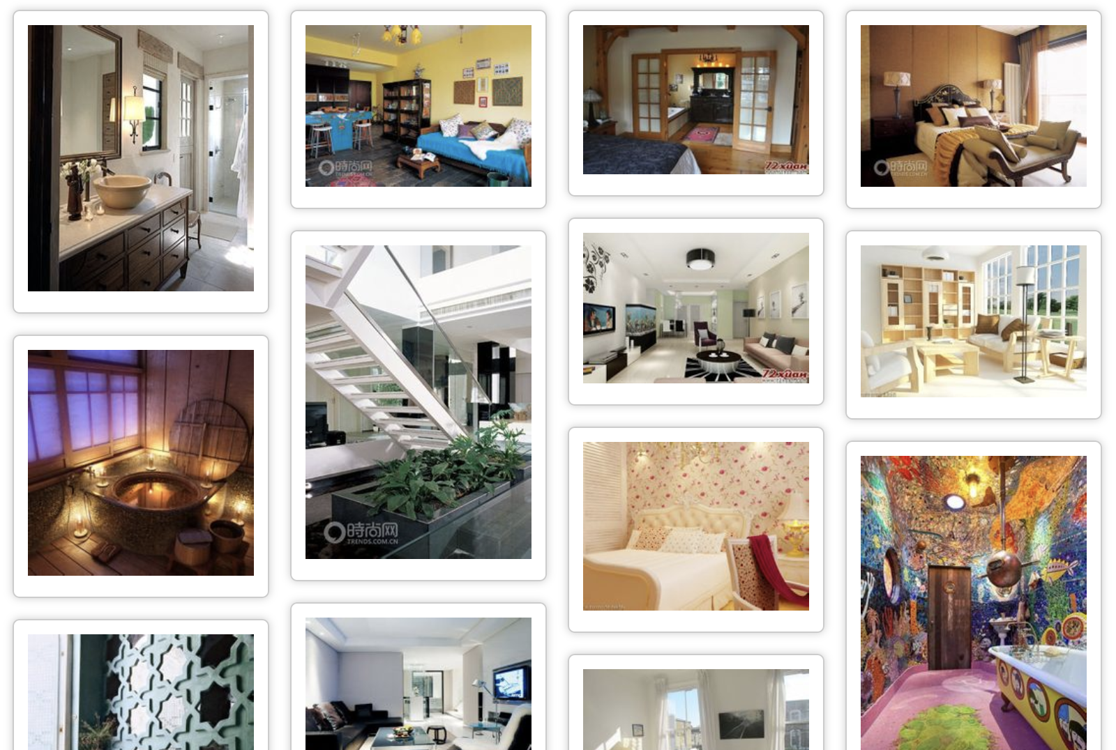 分享一个基于JQuery实现的瀑布流布局,效果如下:
