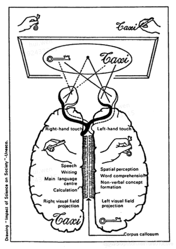 人类大脑有两个结构一致的子系统、左半球跟右半球。虽然结构一样、但不仅仅为了冗灾。它们的联系与区别是什么?这两套子系统是独立的,都有独立的意识、学习、记忆(rentention)。它们有不同的功能。左半球跟逻辑计算相关,说话、写作、计算等,外部世界主要与左半球交互。右半球跟音乐、词句理解、非语言的概念、三维空间等相关。左半球是thinker,右半球是artist。
