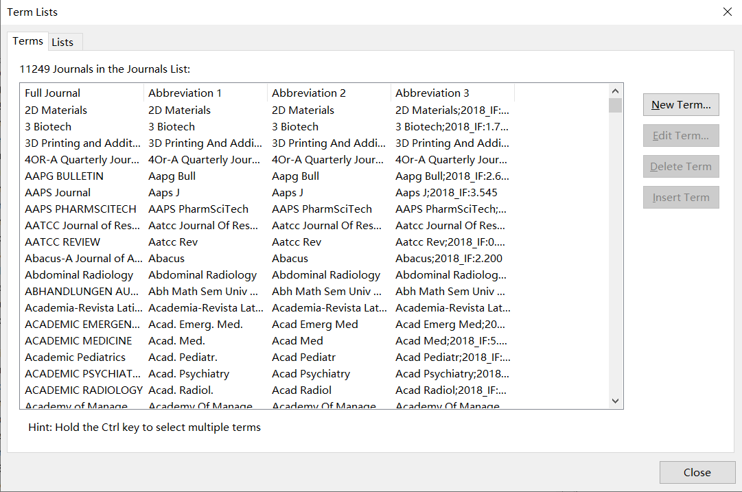 Tools=>open Term Lists=>Journal Term Lists=>Lists(点击Jounal)=>import Term List=>确定
