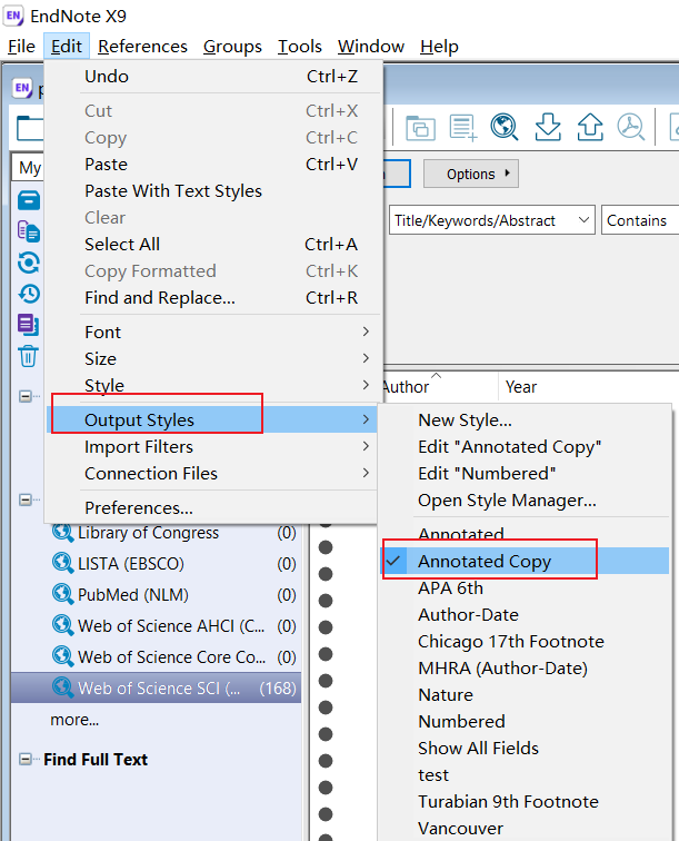 Edit=>OutPuts Styles=>edit "Annonated"=>Jounal name=>abbravation 3(选中)=>另存为annotated Copy