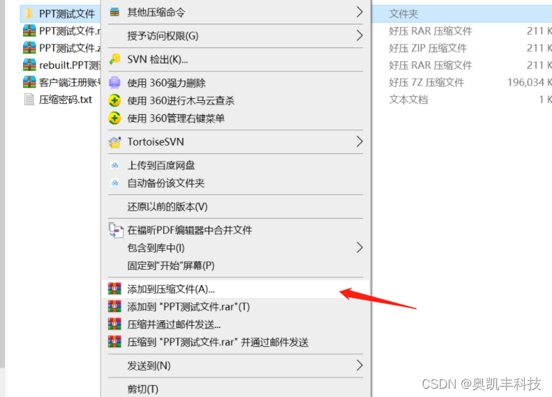 还有就是使用压缩包加密来加密文件,加密方法也很简单,点击需要加密的文件,右键点击,选择【添加到压缩文件】