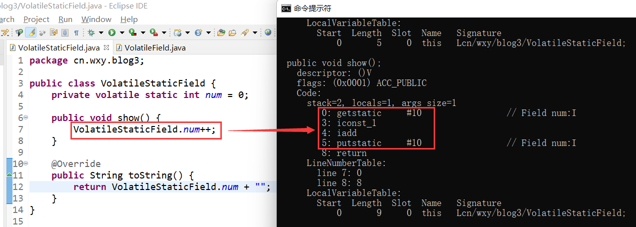 - #10 = Fieldref #1.#11 // cn/wxy/blog3/VolatileStaticField.num:I