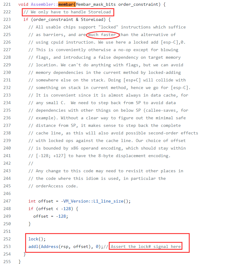 membar函数要转到assembler_x86.cpp文件中,源码地址:jdk/assembler_x86.cpp at master · openjdk/jdk · GitHub