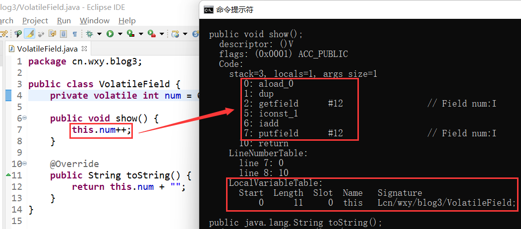 - #12 = Fieldref #1.#13 // cn/wxy/blog3/VolatileField.num:I