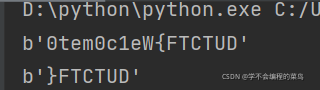 def Demo_05():pw_str = '3074656D30633165577B465443545544'for i in range(len(pw_str) - 2, -1, -2):print(chr(int(pw_str[i] + pw_str[i + 1], 16)), end='')pw_str = '7D465443545544'for i in range(len(pw_str) - 2, -1, -2):print(chr(int(pw_str[i] + pw_str[i + 1], 16)), end='')