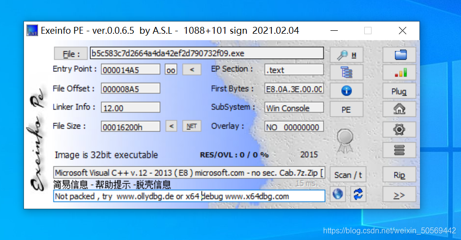 接下来我们正常思路用Exeinfope打开文件查看文件信息