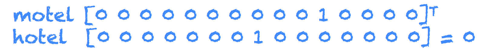 - 词与词之间的向量是正交关系,没有任何语义关联