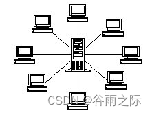 2)星型:网络中的各节点通过点到点的方式连接到一个中央节点,由该中央节点向目的节点传送信息。中央节点执行集中式通信控制策略,因此中央节点相当复杂,负担比各节点重得多。在星型网中任何两个节点要进行通信都必须经过中央节点控制。