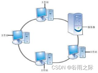3)环型:入网设备通过转发器接入网络,一个转发器发出的数据只能被另一个转发器接收并转发,所有的转发器及其物理线路构成的环状网络系统。节点的故障会引起全网故障,故障检测困难。