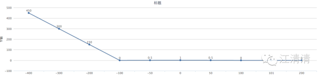 interpolate还支持多段区间,该用来定义一些静态区间。例如:当我们输入为-300的时候取值相反值。然后在输入到-100的时候变成0,当输入接着0 的时候变成1,接着输入一直到100的时候又回到0。最终形成 的静态区间就为0。大于任何大于100的输入都返回0.具体事例如下: