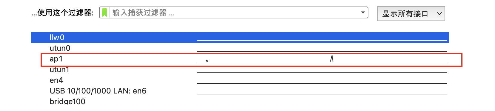 之后就可以看到wireshark的ap1接口有流量了,如下图:
