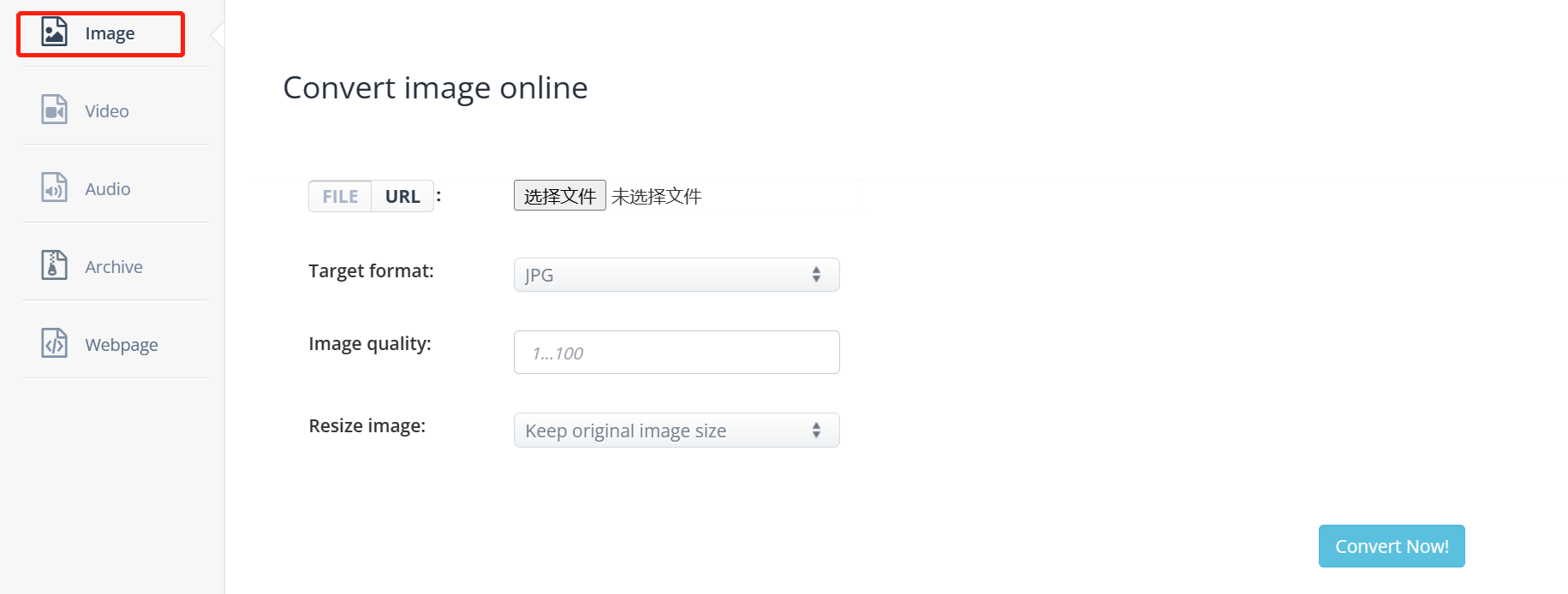 步骤1、打开这个转换链接之后,我们可以看到左侧多个选项,直接点击“image”;