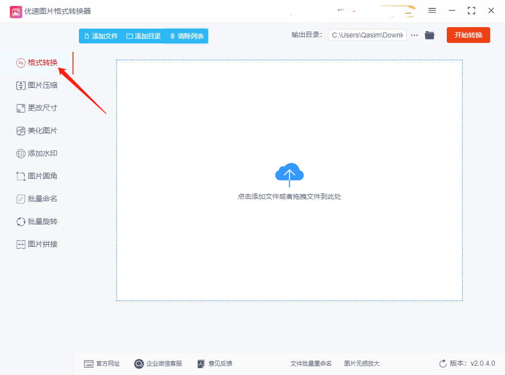 步骤1、如果还没有安装“优速图片格式转换器”软件,则记得下载并安装。打开之后在主页面中选择“格式转换”功能。实际上,这个软件工具的功能较多,我们可以根据自己的实际需求,选择对应的功能,从而实现图片格式的自由转换。
