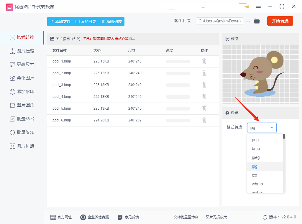 方法一,使用“优速图片格式转换器”,将BMP转为JPG: