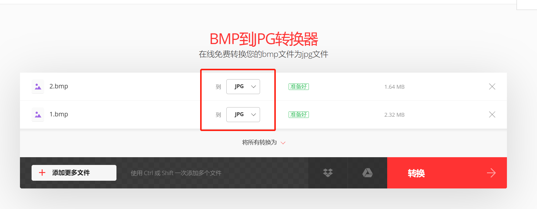 步骤2、在图片上传之后,如下图所示,需要将目标格式更改为“jpg”,这样才能够将bmp格式的图片转换为jpg;