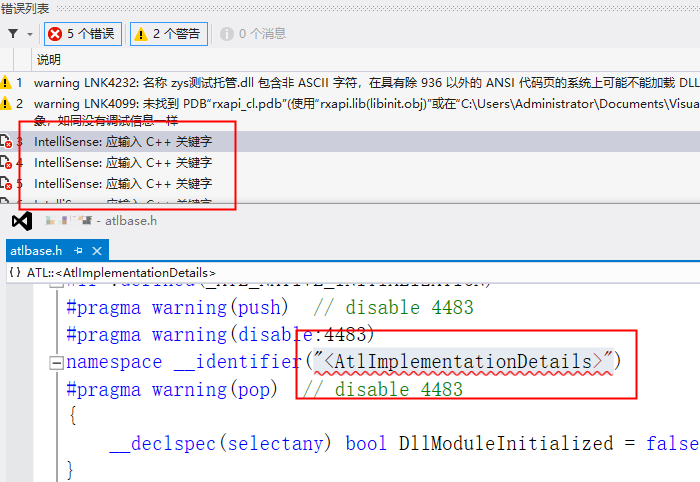 IntelliSense: 应输入 C++ 关键字,错误来自“atlbase.h” 。