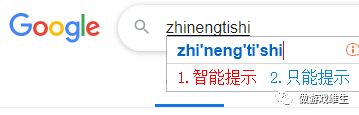 以下是百度跟谷歌的智能提示上的对比,我们可以下结论说在用户进行拼音的输入时,在感知体验上谷歌是不如百度的效果好的。