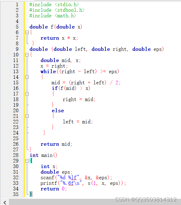 使用二分逼近法来求解根号N的近似值,eps为给定的精度。