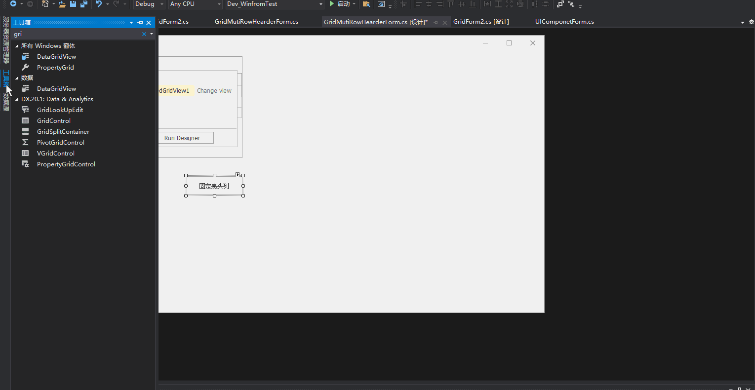 ①将创建的GridControl下的GirdView1转化为BandGridView类型;