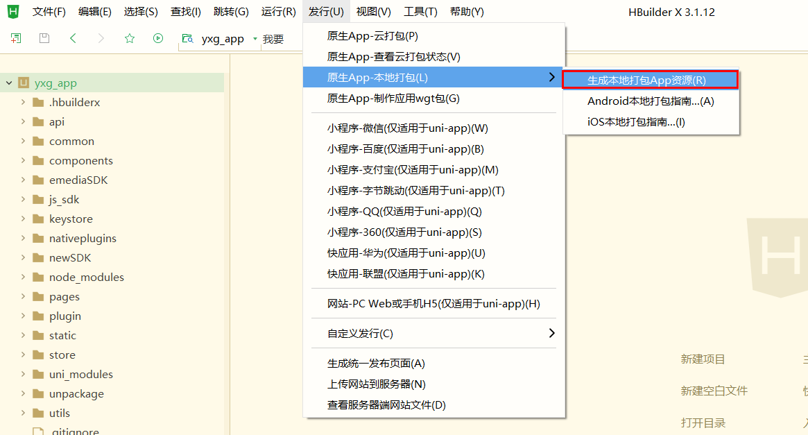 第三步:在Hbuilder X生成自己所需要的离线打包的app本地离线资源!