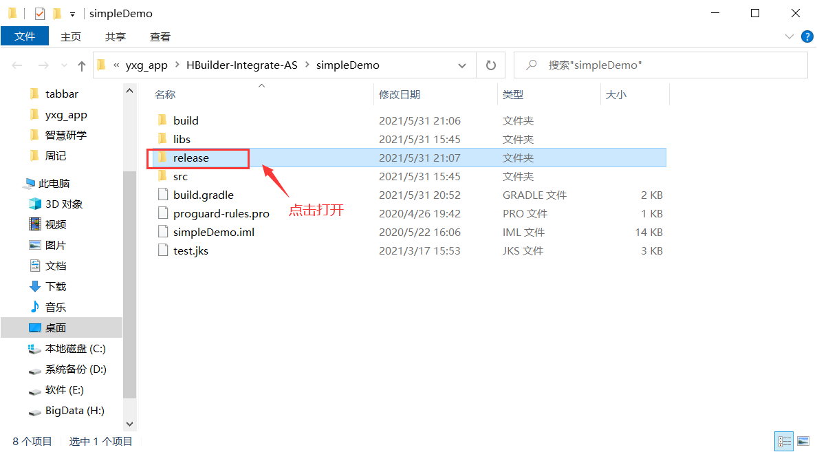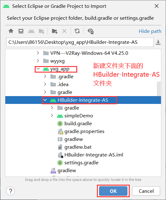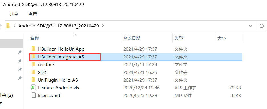 4.打开解压到桌面的文件夹!复制这个HBuilder-Integrate-AS 文件夹到自己创建的app文件中去!
