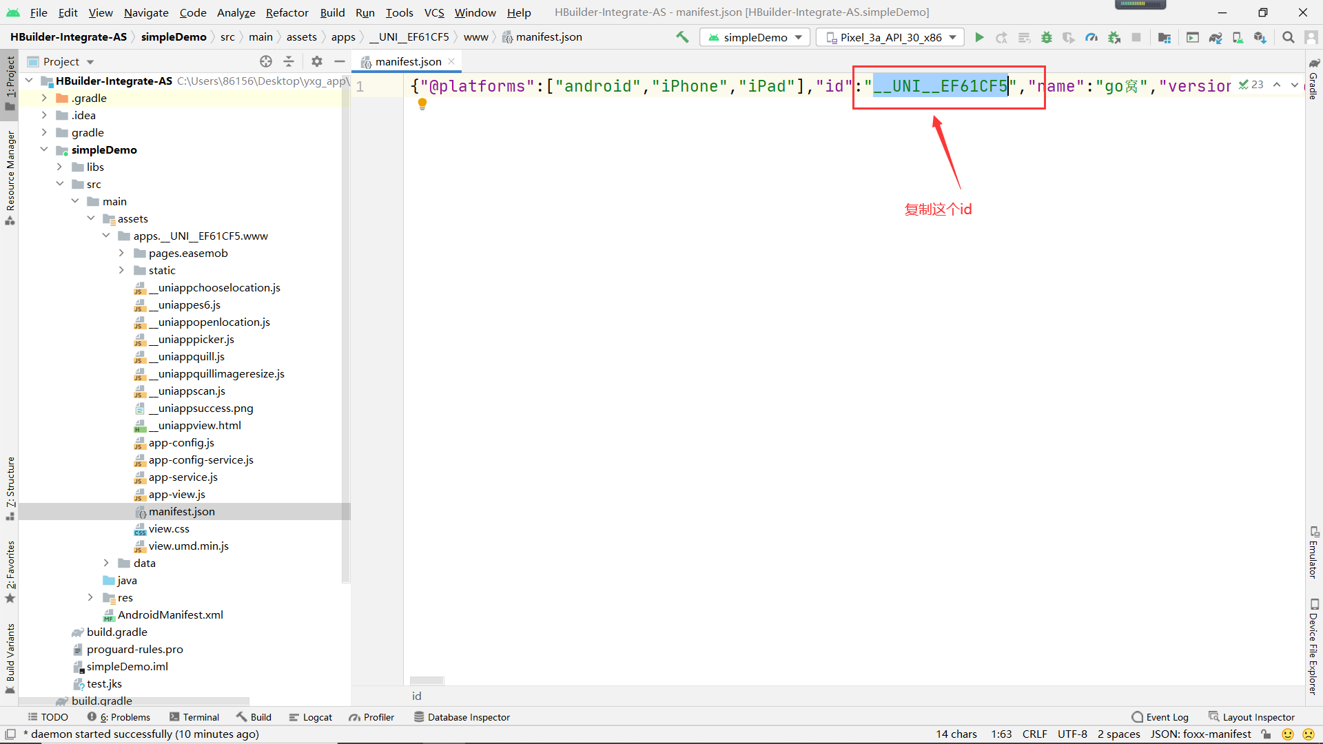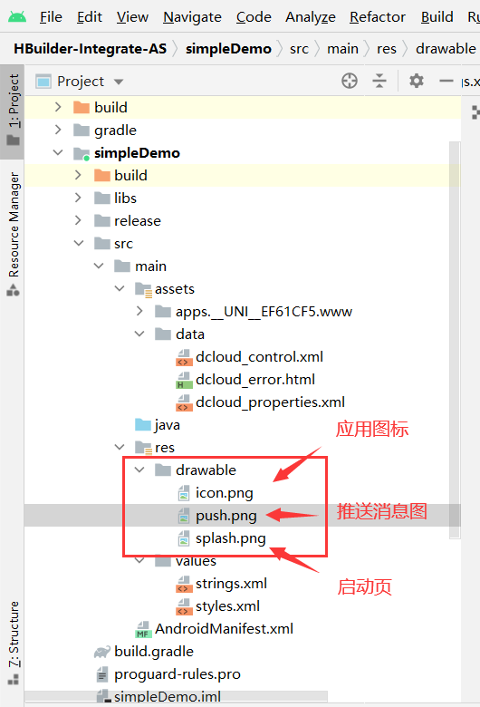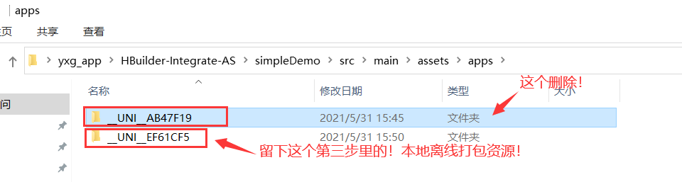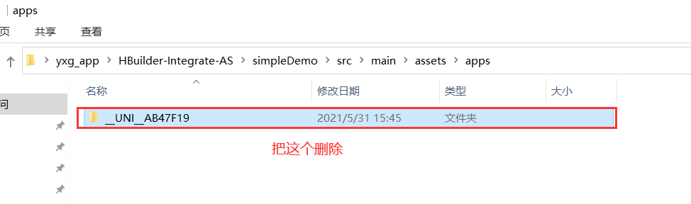 7.打开这个HBuilder-Integrate-AS文件夹,把这个 __UNI__AB47F19 文件夹删除!