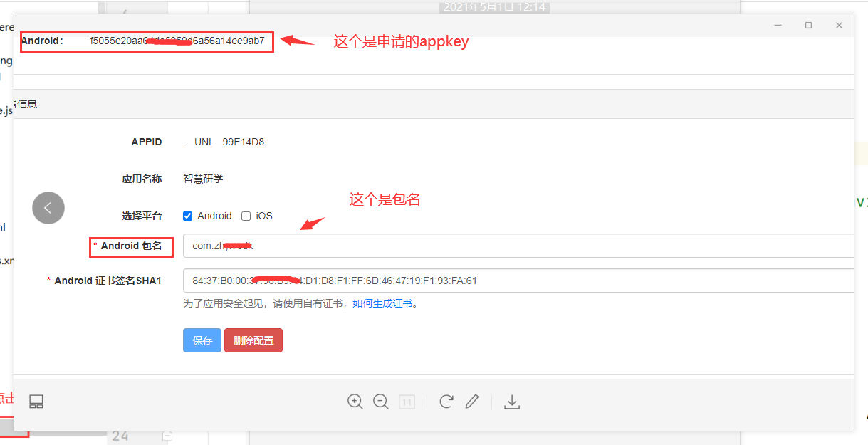 出现这个未配置appkey或配置错误,重新看下 第六步:开始修改文件! 再仔细操作一下,或者就是appkey错误,或者证书文件错误