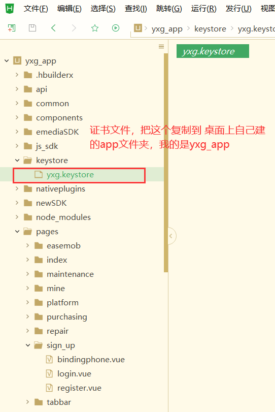 找到桌面自己新建的app文件夹,我的是yxg_app