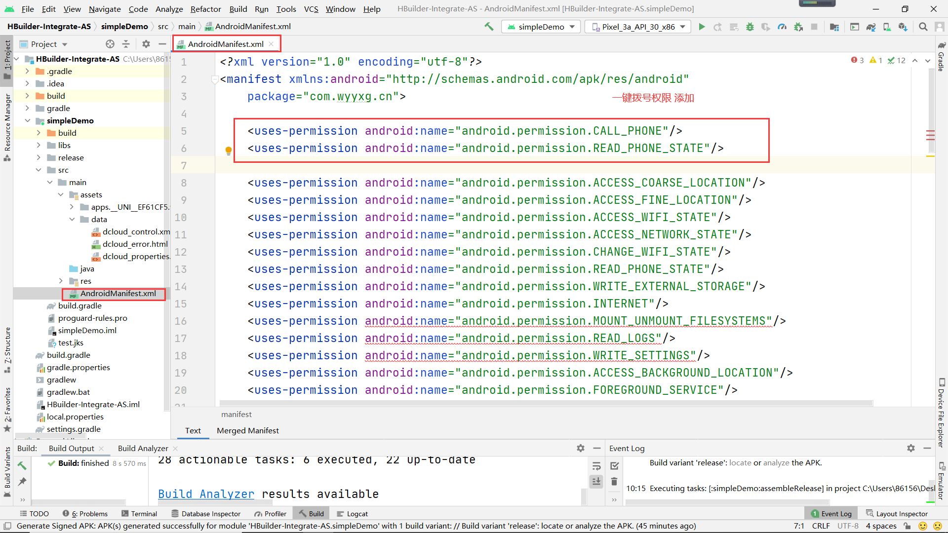 如果离线打包的app有一键拨号的功能,需要添加下面的权限