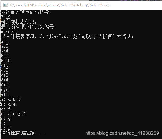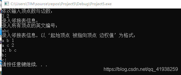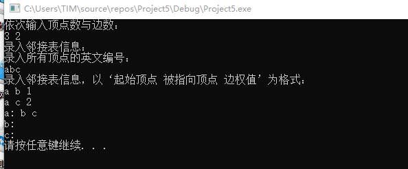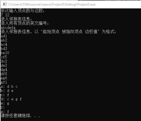 {adjListGraph A;A.createGraph();A.print();system("pause");return 0;