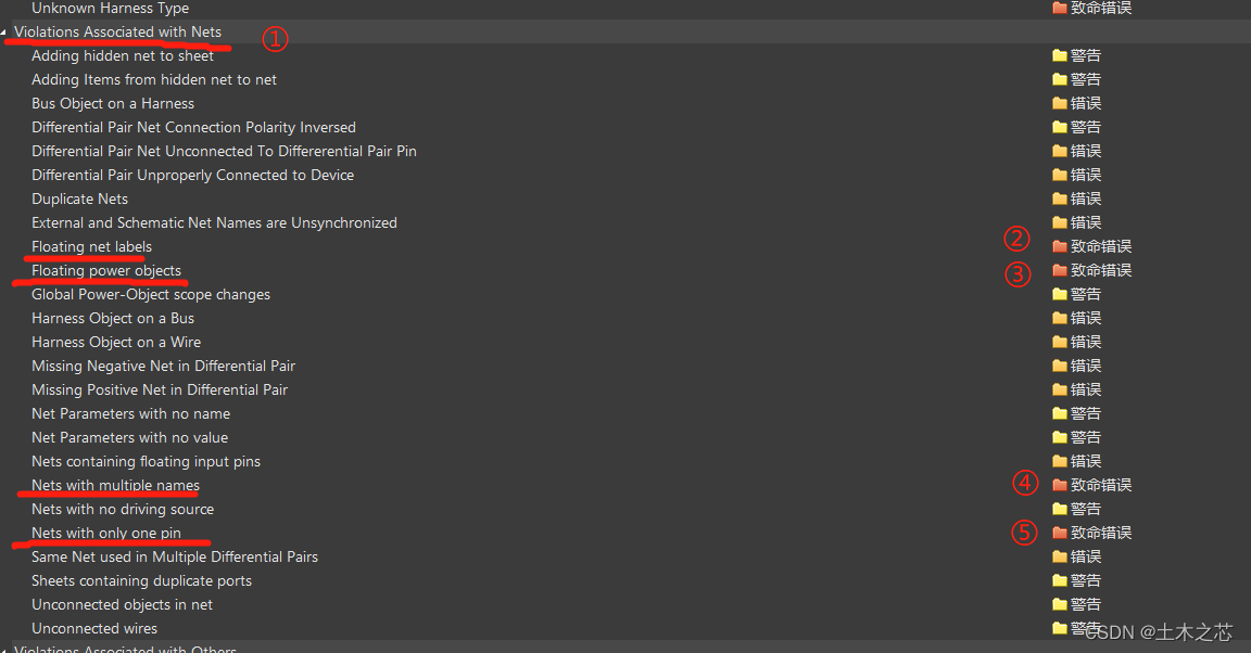 是指这个电源网络没有和器件连接上或者 只有一个这样类型的电源网络,则这个电源就编变成了单独电源,把它改成警告-->致命错误,然后要是没有连接上,会有很明显的红色提示线提示给我们。
