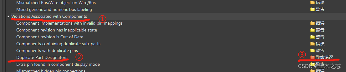 两个或者多个元件具有相同的名字,把它改成警告-->致命错误,然后要是出现重复位号,会有很明显的红色提示线提示给我们。