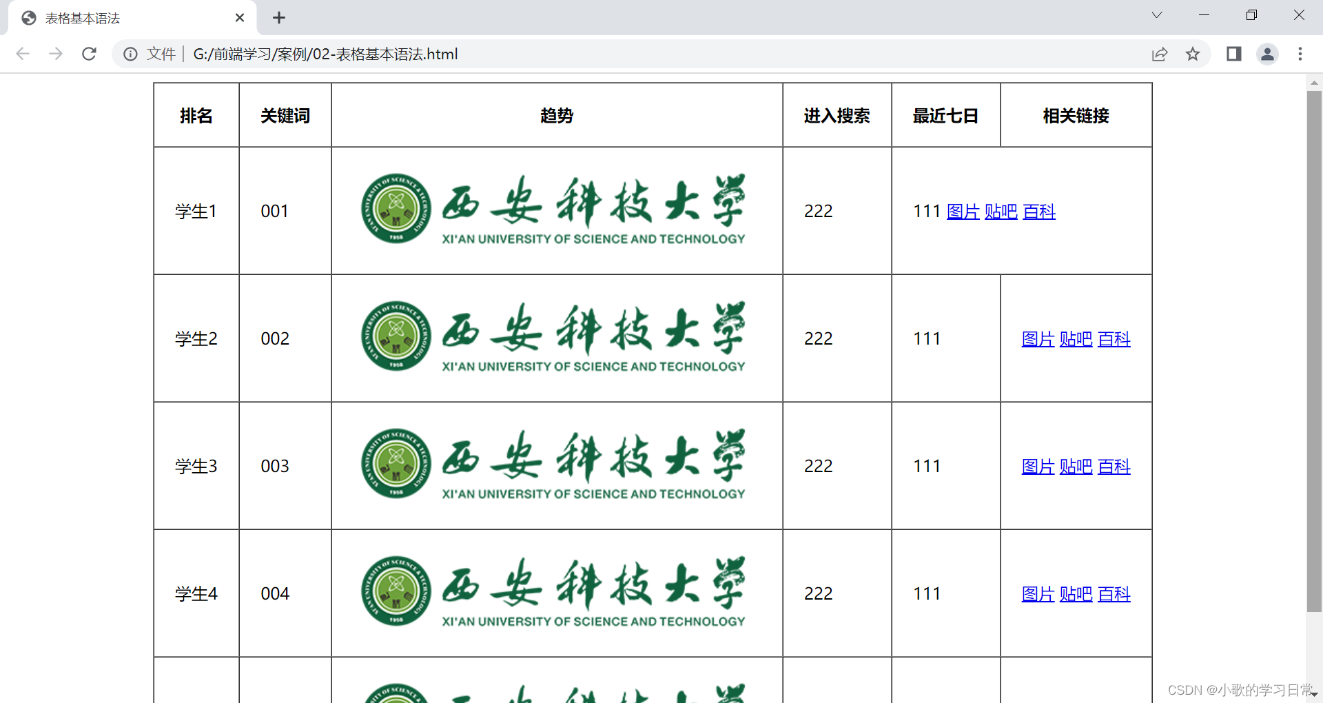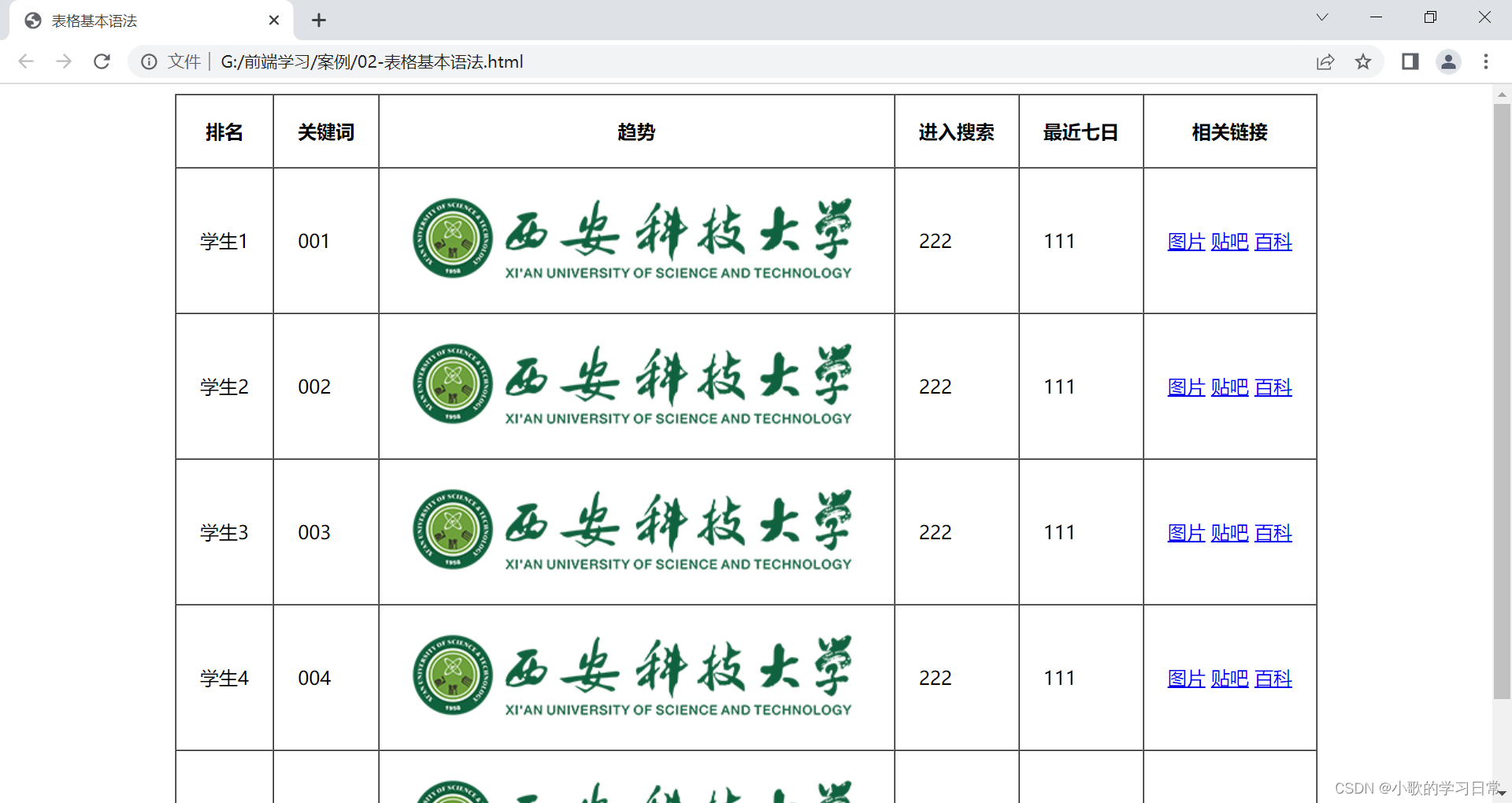 排名 关键词 趋势 进入搜索 最近七日 相关链接 学生1 001