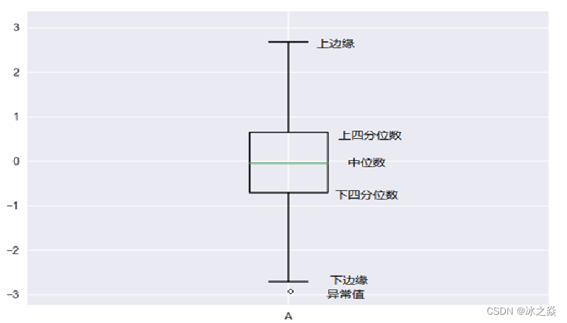6.箱线图是利用数据中的最小值、上分位数、中位数、下四分位数与最大值这5个统计量来描述连续型特征变量的一种方法。它也可以粗略地看出数据是否具有对称性,分布的分散程度等信息,特别可以用于对几个样本的比较。箱线图的构成与含义如图所示。