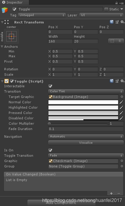 多个Toggle 可以设置同一个 Toggle Group 这样这几个Toogle 就只能有一个是选中状态了。