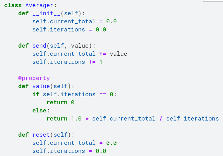不同的是定义了Averager类,这一个类来保存对应的loss。