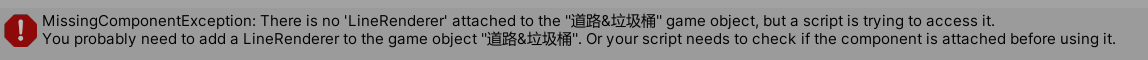 解决办法:在AddComponent中添加Line Renderer组件即可解决问题