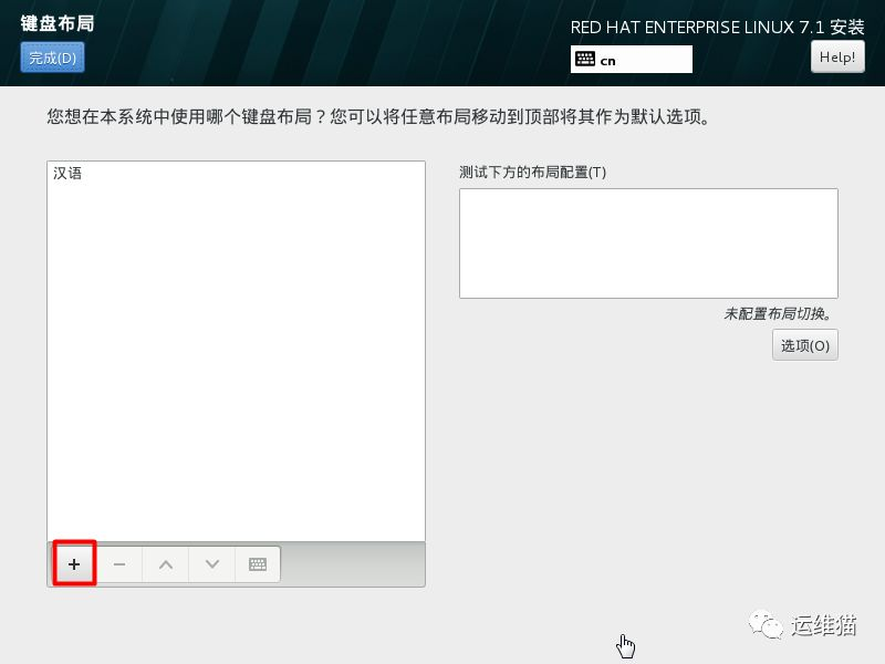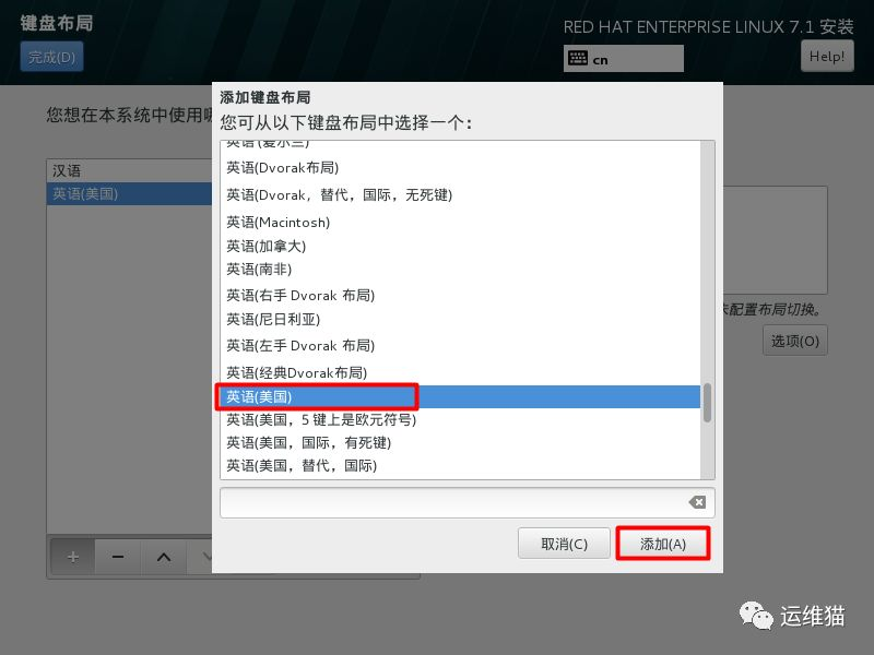 6)键盘选择,单击按钮,添加新的键盘布局方式,选中要添加的语言,然后单击