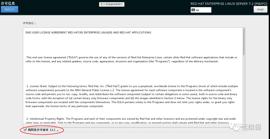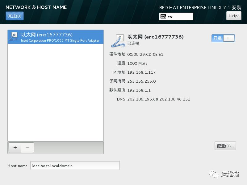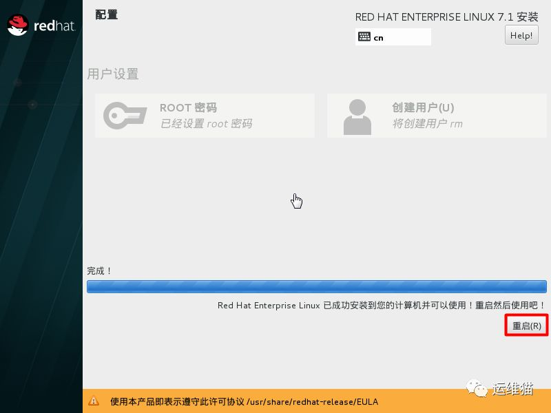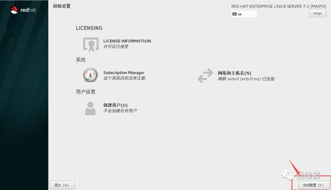 注:RHEL7安装时会自动配置VMware Tools,因此,安装完成后无需配置安装Vmware Tools