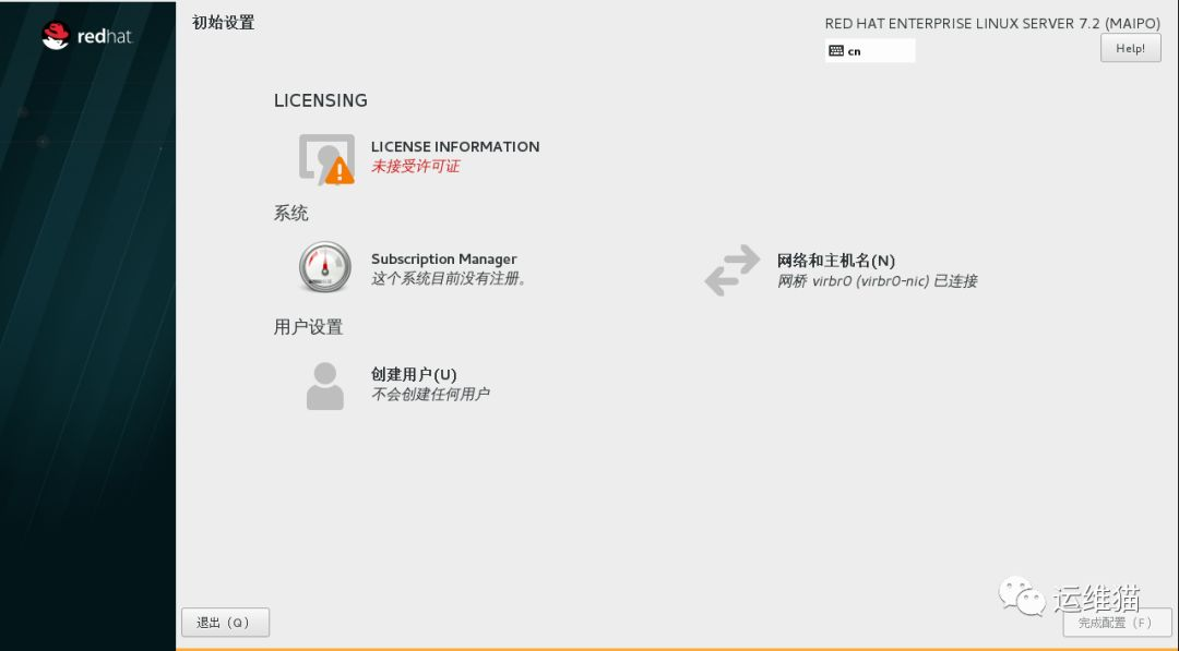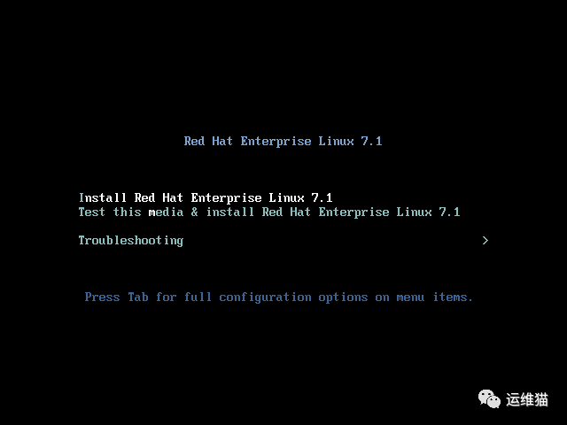 2)这里选择第一项,安装RHEL 7.1,回车,进入下面的界面