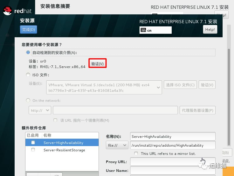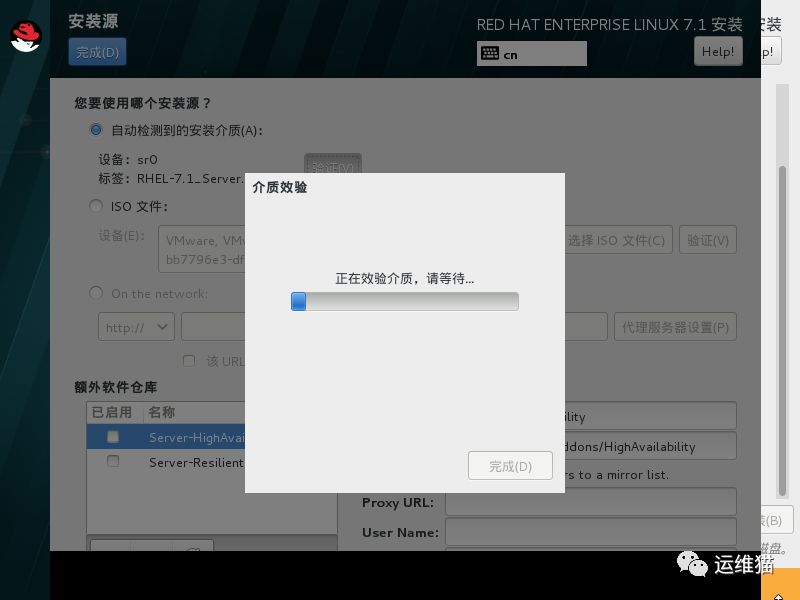 单击验证,验证光盘或镜像是否完整,防止安装过程出现软件包不完整