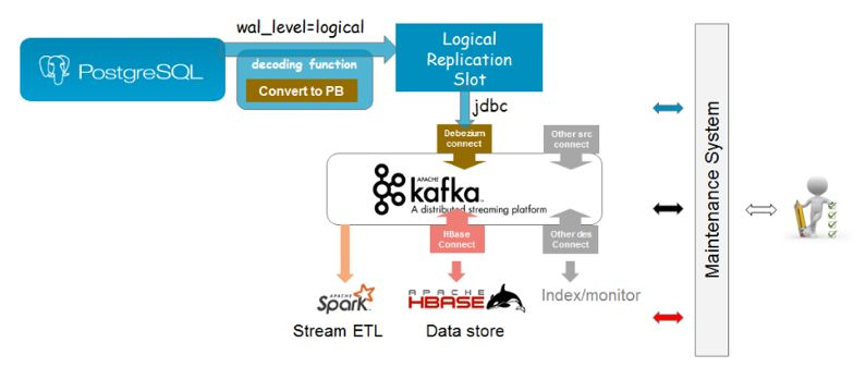解析WAL成为逻辑数据的过程被称为Logical Decoding,是从PostgreSQL 9.4开始引入的特性。Logical Decoding是把WAL日志解析成逻辑日志的过程,将用户定阅的数据变化(即对某些表的insert/update/delete操作来带的数据变化)输出成特定的数据格式,Debezium支持Logical Decoding plugin有decoderbufs、wal2json、pgoutput(PostgreSQL 10以上版本)。
